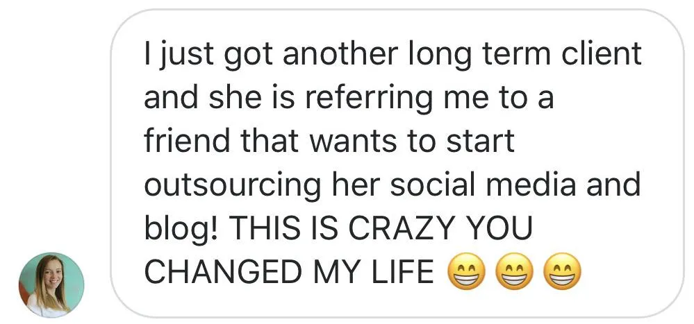 If your gut said “dream life!!” - give yourself a high five and click the button below. In 90 days or less you could have your first few clients and all the skills you need to add on as many as you want, working when you want, where you want, and how you want.