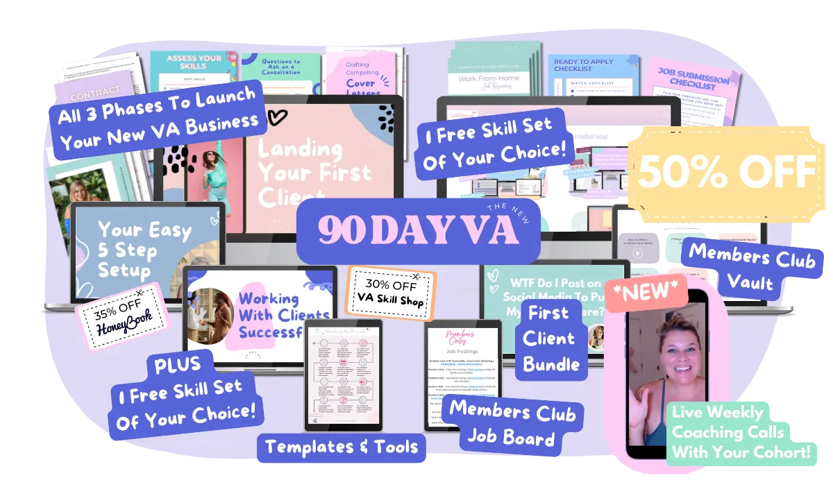 The only coaching + course that helps anyone become a virtual assistant in just 90 days no matter what background or experience you have!